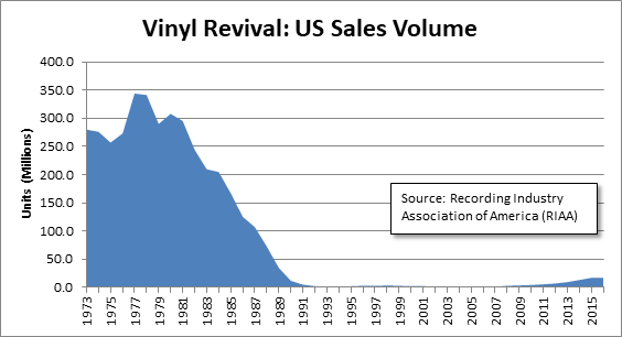 Vinyl record fans emerge as a niche of music listeners. It is legitimate to question whether the rate of growth of record sales over ten years is sufficient for developing into a substantial and solid market segment. On the other hand, the way record sales have mounted is extraordinary given the conditions of technological evolution and competition in the music market. Vinyl records offer genuinely different, missed qualities of tangible feel and pleasure of listening to those who appreciate them. More marketing effort will be required to fuel continued growth — building on qualities of vinyl that make it special and encouraging more music listeners to join the niche (e.g., events, new and renewed editions, advertising in streaming services, and prompting more word-of-mouth and conversations in social media). Expansion of the vinyl niche can additionally benefit other sections of the recorded music market.
